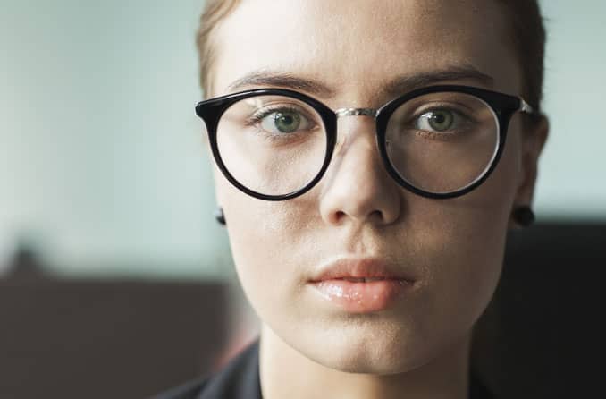 Ihre Augen sitzen zentriert (oder fast zentriert) in der Glasöffnung der Fassung.