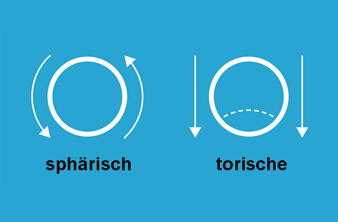 Torische weiche Kontaktlinsen bei Hornhautverkrümmung unterscheiden sich von den normalen ("sphärischen") weichen Linsen, die lediglich entweder Myopie oder Hyperopie auf zwei Weisen korrigieren: