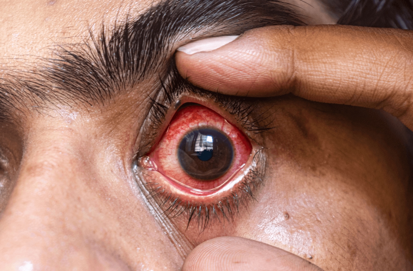 कंजंक्टिवा एक बहुत पतली, स्पष्ट झिल्ली है जो आंख के सफेद हिस्से (श्वेतपटल) और पलकों की भीतरी सतह को ढक लेती है। जब इसमें सूजन होती है, तो आपकी पलकों के अंदर का भाग भी सामान्य से अधिक लाल दिखाई दे सकता है। कभी-कभी, उन्हें थोड़ी सूजन या दर्द भी महसूस हो सकता है। अपनी आंखों को रगड़ने से सूजन, दर्द और लाली खराब हो सकती है।
