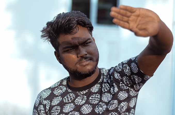 कॉन्टेक्ट लेंस पहने हुए
