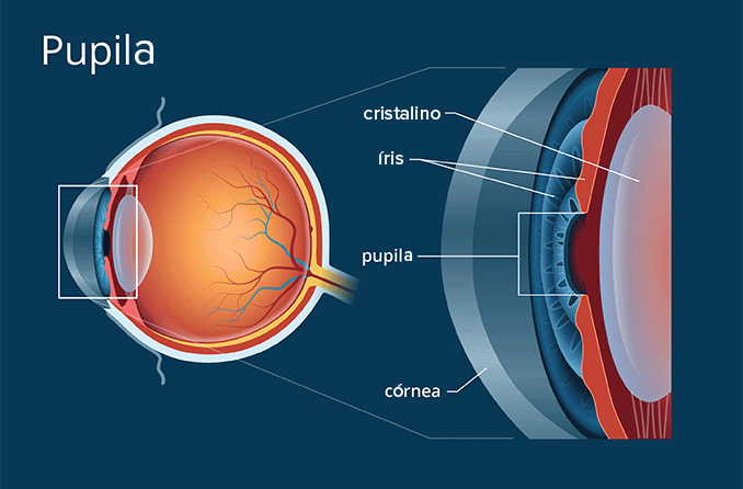 A córnea é a parte transparente da superfície frontal do olho. Ela fica logo à frente da íris e da pupila, e permite a entrada de luz no olho.